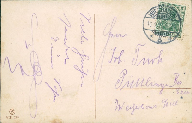 Alte Ansichtskarte aus Wiesbaden-Sonnenberg, gelaufen am 16.04.1911 von Wiesbaden nach Püttlingen.