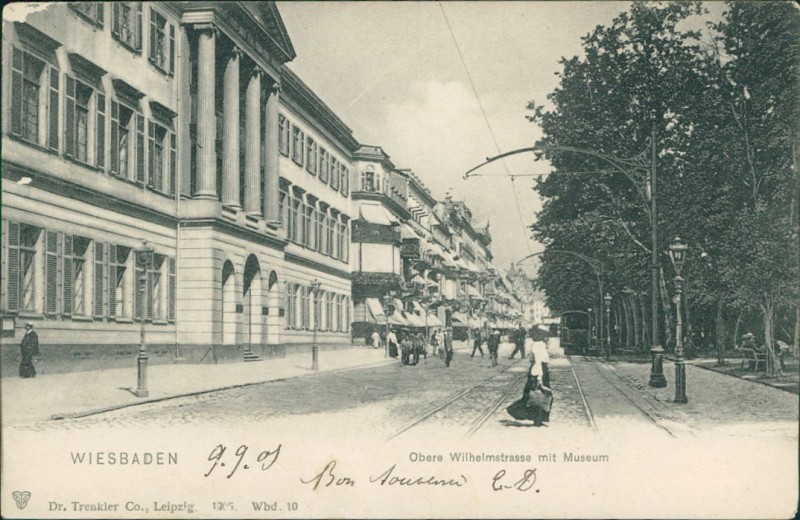 Alte Ansichtskarte aus Wiesbaden, gelaufen um 1907.