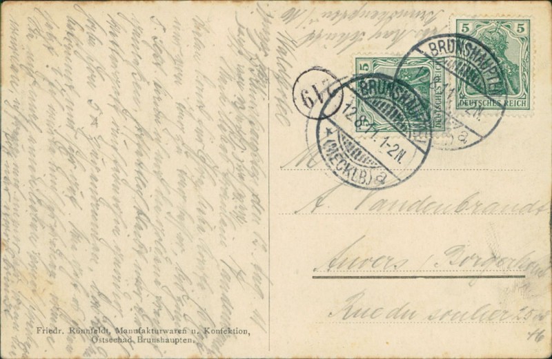 | Verlag | Friedr. Rönnfeldt, Manufakturwaren u. Konfektion, Ostseebad Brunshaupten |