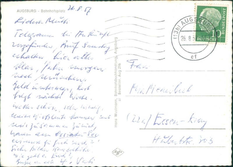 VerlagHans Wustmann, Bahnhofsbuchhandlung, Augsburg