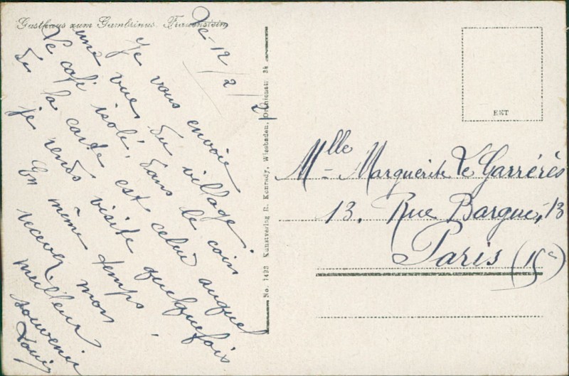 Alte Ansichtskarte aus Wiesbaden-Frauenstein, beschrieben am 12.02.1921.