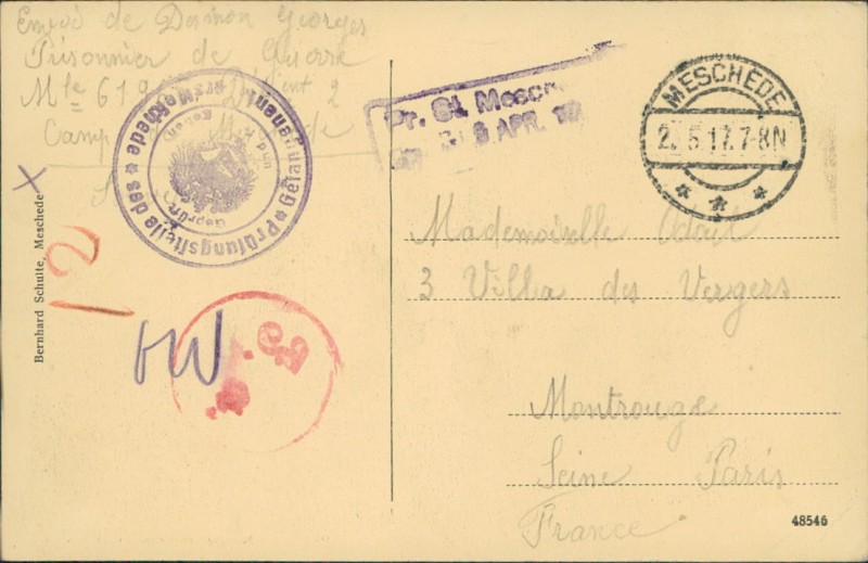 Alte Ansichtskarte aus Meschede, gelaufen am 02.05.1917 von Meschede nach Paris.