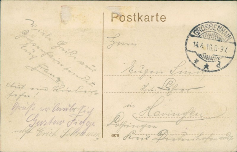 Alte Ansichtskarte aus Großenhain, gelaufen am 14.04.1916.