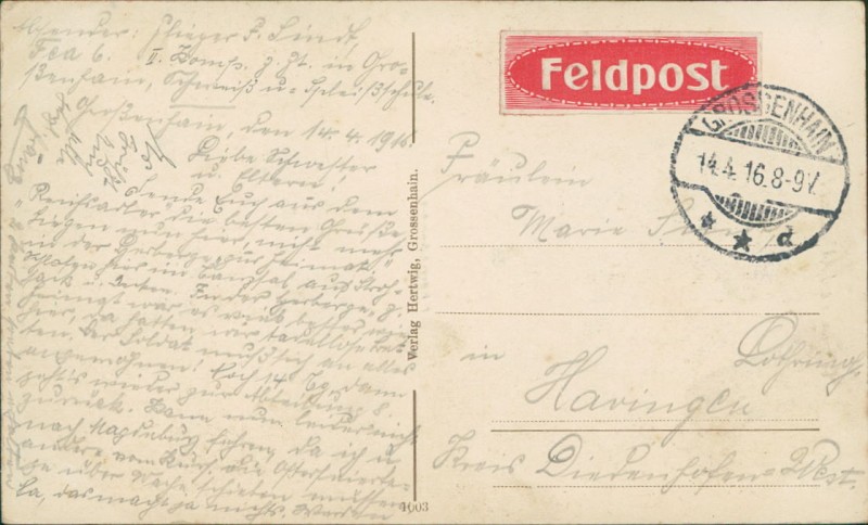Alte Ansichtskarte aus Großenhain, gelaufen am 14.04.1916.