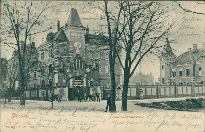 Alte Ansichtskarte aus Dessau-Roßlau, gelaufen um 1904 von Dessau nach Oberammergau.