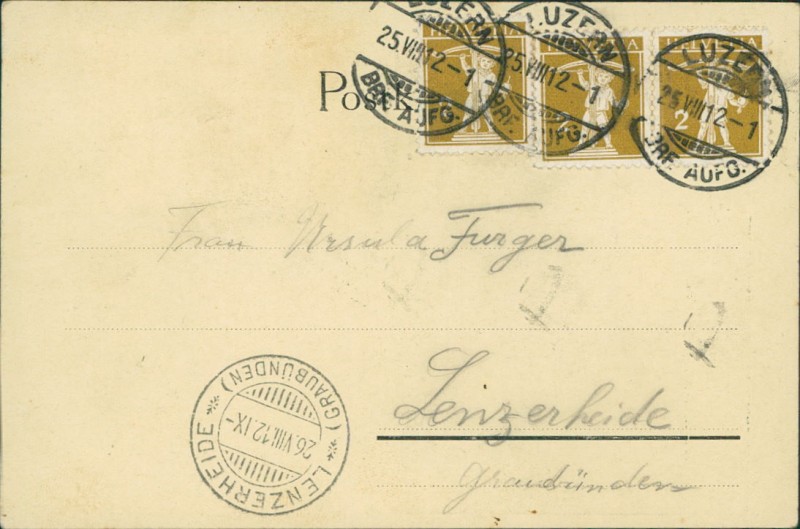 Alte Ansichtskarte aus Zug, gelaufen am 25.08.1912 von Luzern nach Lenzerheide.