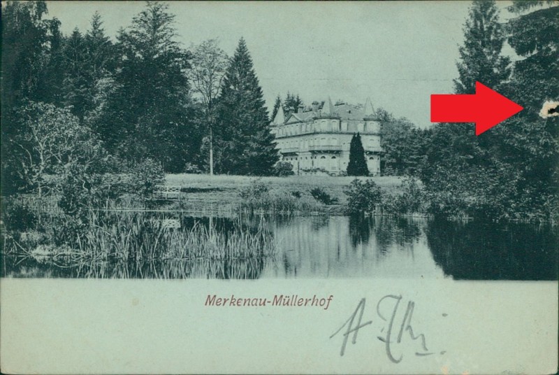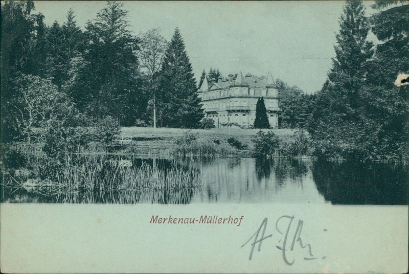 Alte Ansichtskarte aus Merkenau, gelaufen am 09.11.1900.