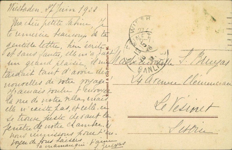Alte Ansichtskarte aus Wiesbaden, gelaufen am 27.06.1922.