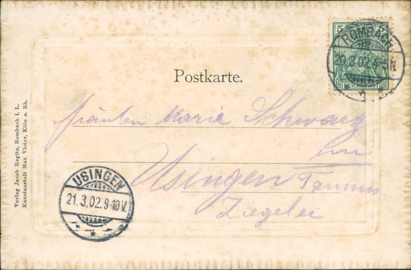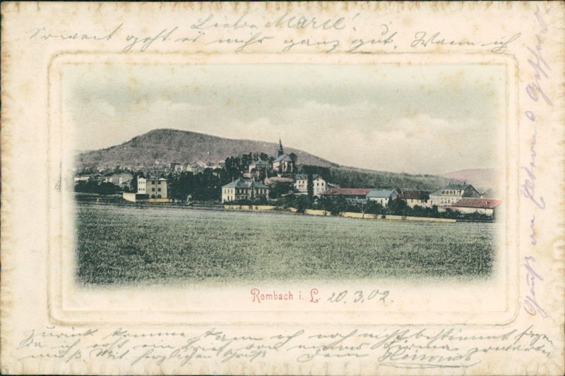 Alte Ansichtskarte aus Rombas / Rombach, gelaufen am 20.03.1902 von Rombach nach Usingen Taunus.