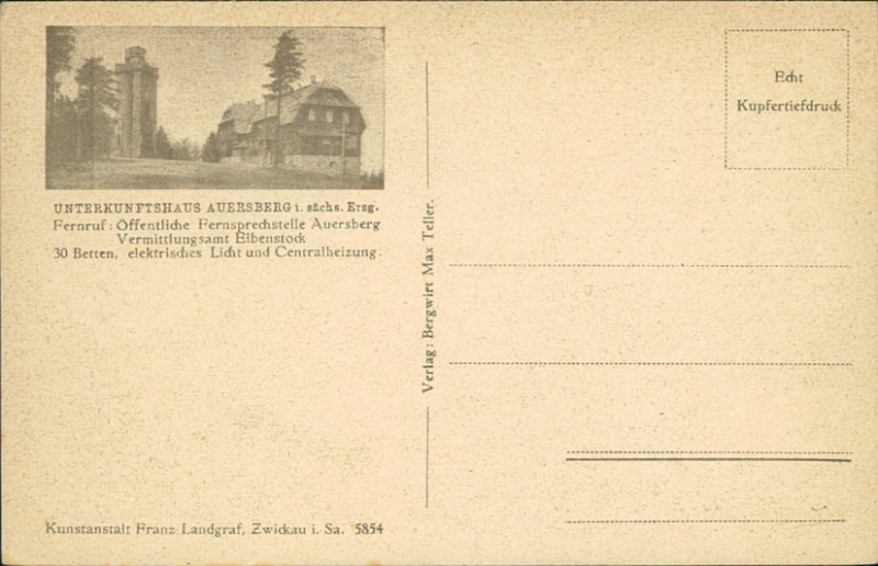 Alte Ansichtskarte aus Eibenstock-Auersberg, gelaufen um 1924.