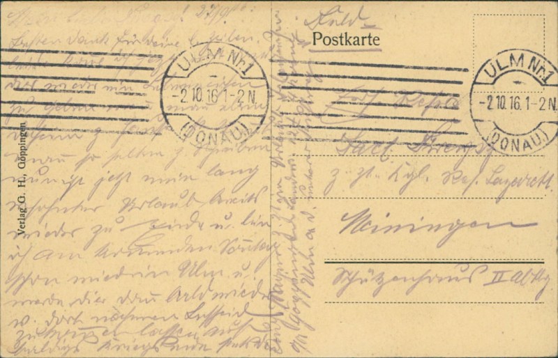 Alte Ansichtskarte aus Göppingen, gelaufen am 02.10.1916.