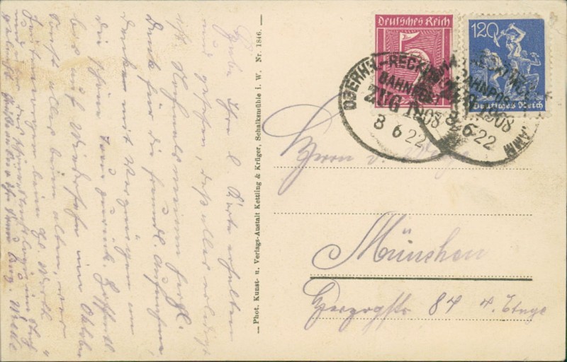 Alte Ansichtskarte aus Datteln, gelaufen am 08.06.1922 von Oberhausen-Recklinghausen-Hamm (Bahnpost) nach München.