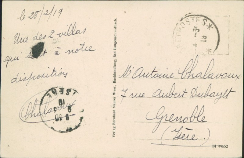 Alte Ansichtskarte aus Bad Schwalbach, gelaufen am 25.02.1919.
