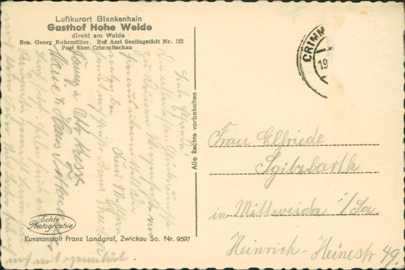 Alte Ansichtskarte aus Blankenhain, gelaufen um 1936.