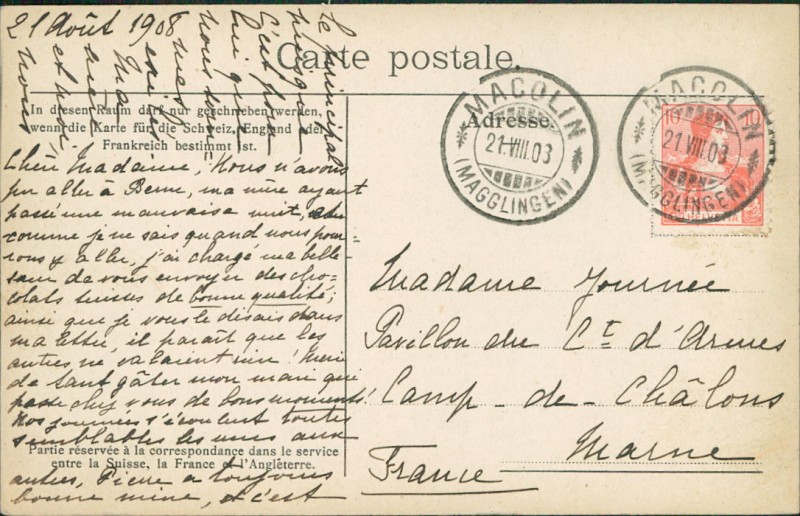 Alte Ansichtskarte aus Magglingen, gelaufen am 21.08.1908.