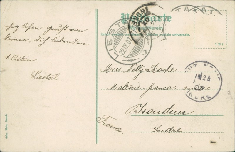 Alte Ansichtskarte aus Liestal, gelaufen am 22.09.1907.
