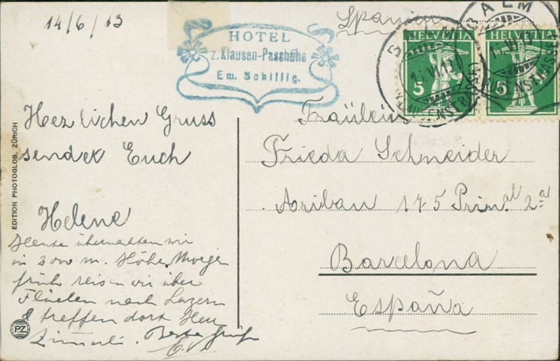 Alte Ansichtskarte aus Unterschächen, gelaufen am 15.06.1913.