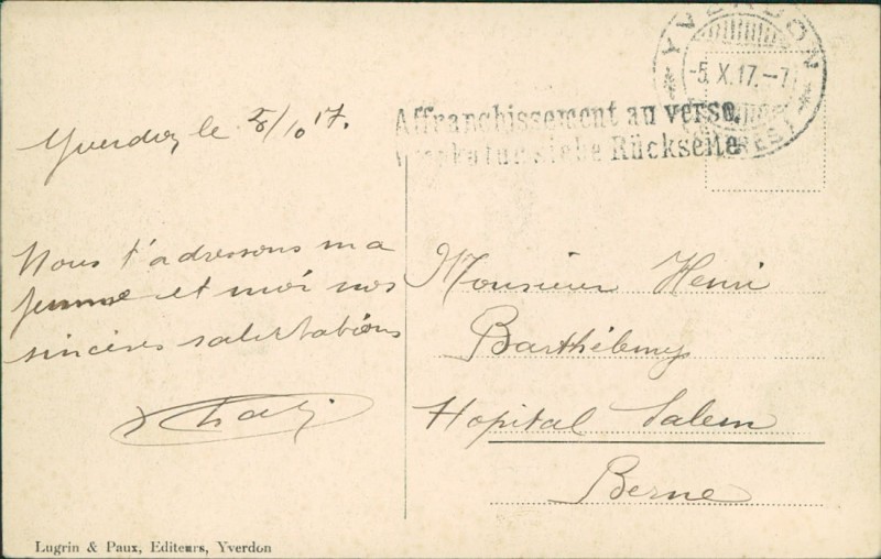 Alte Ansichtskarte aus Yverdon-les-Bains, gelaufen am 25.10.1917.