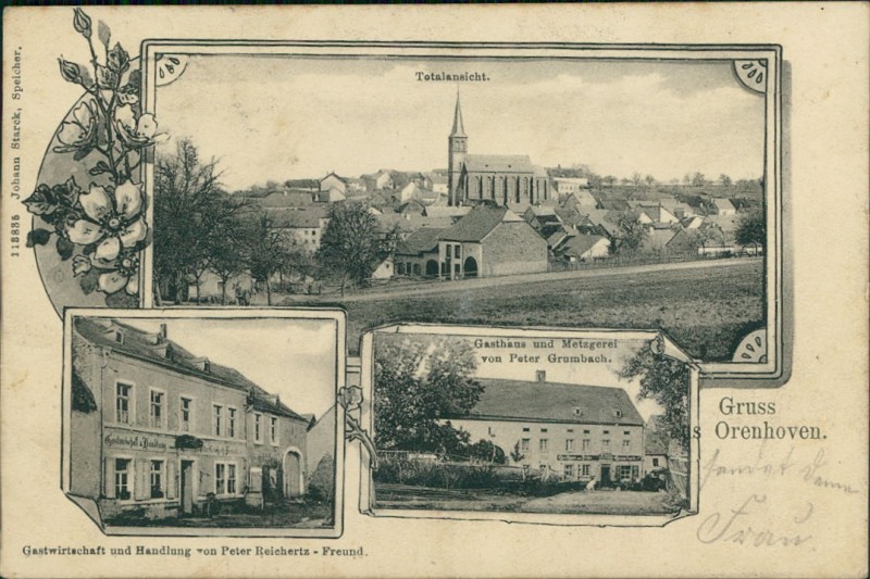 Alte Ansichtskarte aus Orenhofen, gelaufen am 01.07.1907 von Speicher nach Altenwald.
