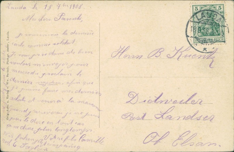 Alte Ansichtskarte aus Lauda-Königshofen, gelaufen am 18.09.1908.