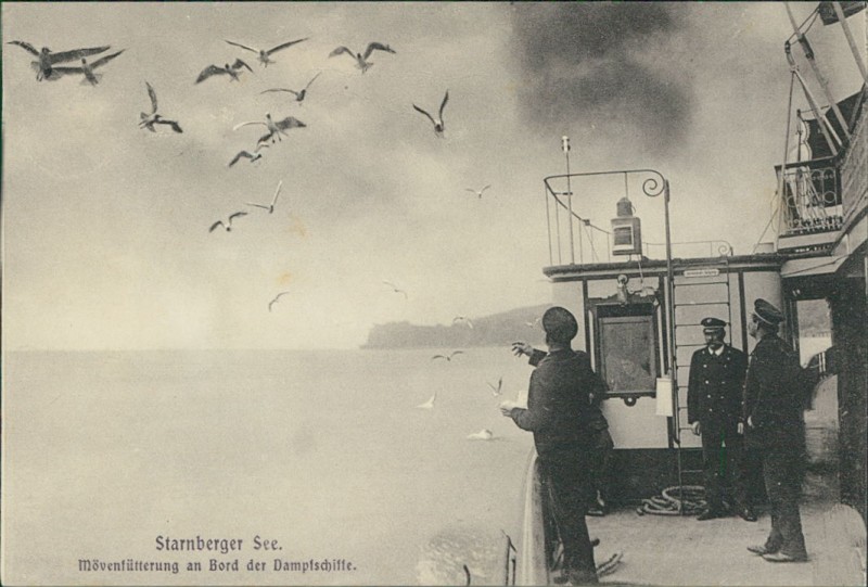 Mövenfütterung an Bord der Dampfschiffe