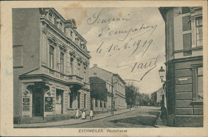 Alte Ansichtskarte aus Eschweiler, gelaufen am 10.03.1919.