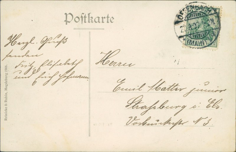 Alte Ansichtskarte aus Offenbach am Main, gelaufen am 27.08.1907 von Offenbach nach Strasburg i. Els.