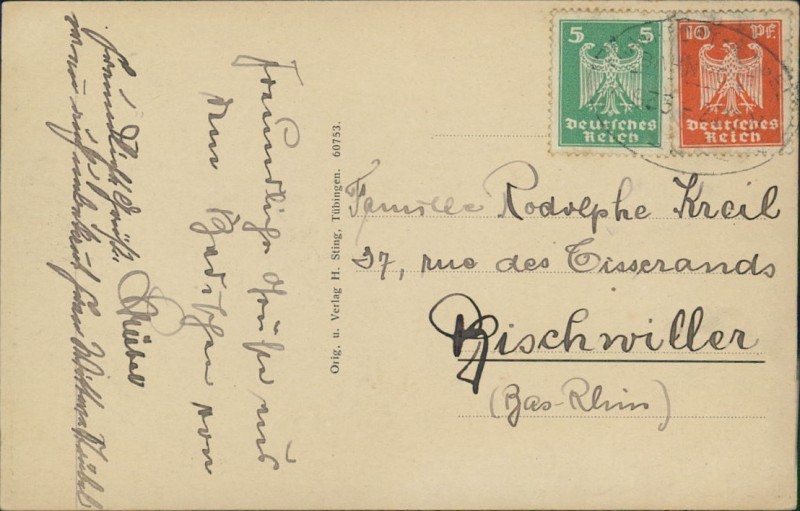 Alte Ansichtskarte aus Sinzheim, gelaufen um 1933.