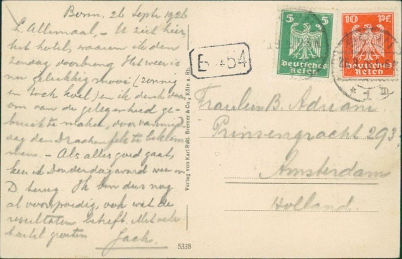 Alte Ansichtskarte aus Bonn, gelaufen am 26.09.1926 von Bonn nach Amsterdam.
