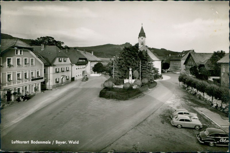 Alte Ansichtskarte aus Bodenmais, gelaufen am 24.07.1957 von Bodenmais nach Berlin.