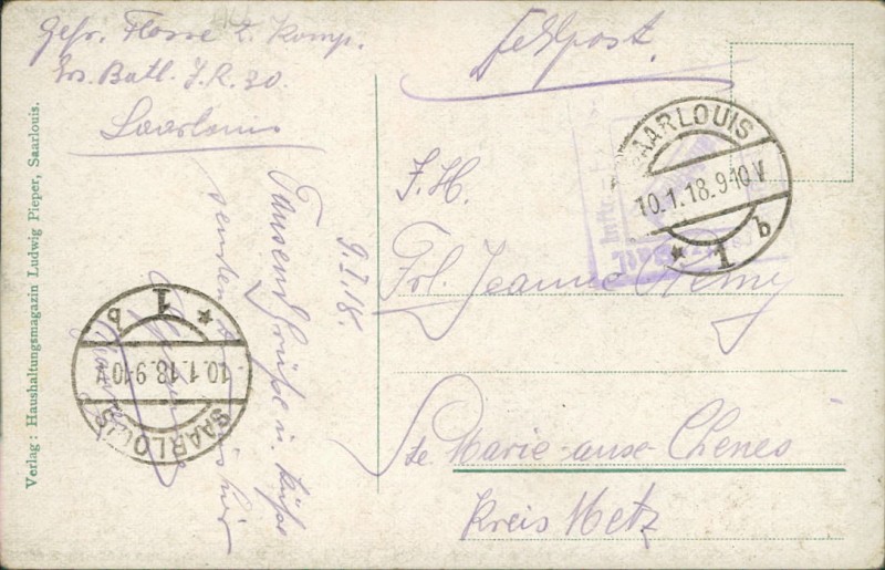 Alte Ansichtskarte aus Saarlouis, gelaufen am 10.01.1918.