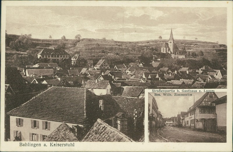 Alte Ansichtskarte aus Bahlingen am Kaiserstuhl, gelaufen am 03.12.1915 von Bahlingen (Ortswerbestempel) nach Neustadt a. d. Weinstr.