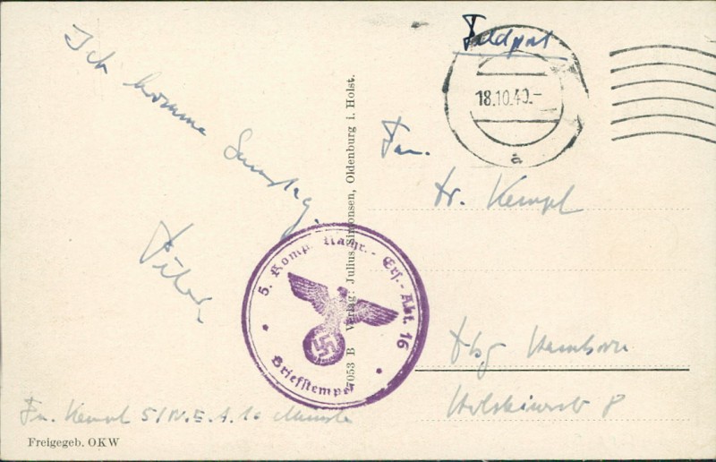 Alte Ansichtskarte, gelaufen am 18.10.1940.