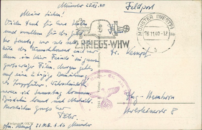 Alte Ansichtskarte, gelaufen am 26.11.1940.