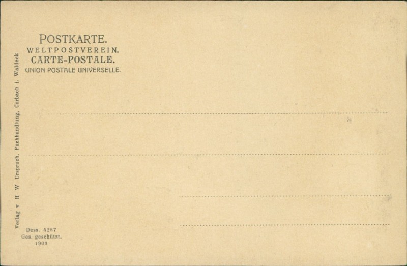 Alte Ansichtskarte aus Korbach, ungebraucht, gedruckt um 1903.