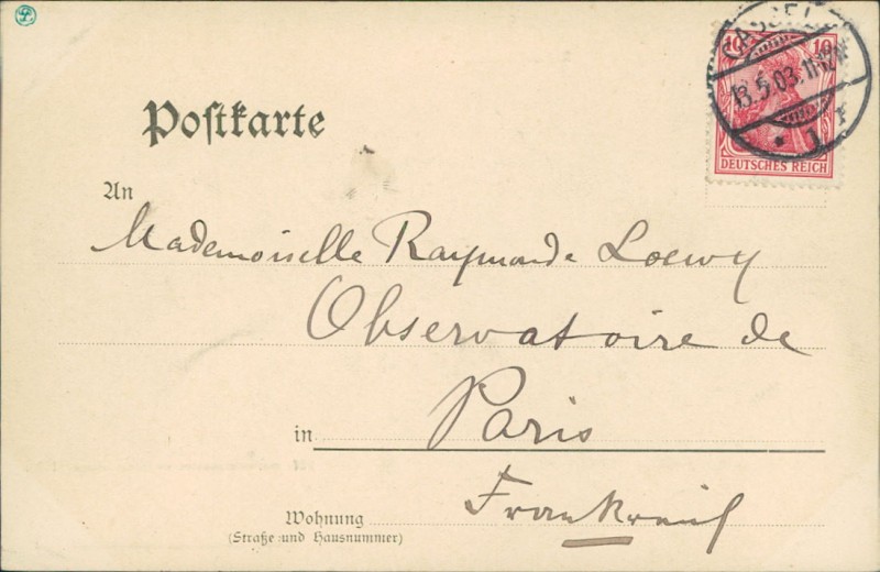 Alte Ansichtskarte aus Kassel, gelaufen am 13.05.1903 von Cassel nach Paris.