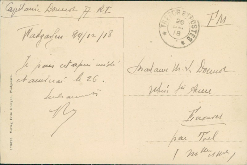 Alte Ansichtskarte aus Wadgassen, gelaufen am 26.12.1918.