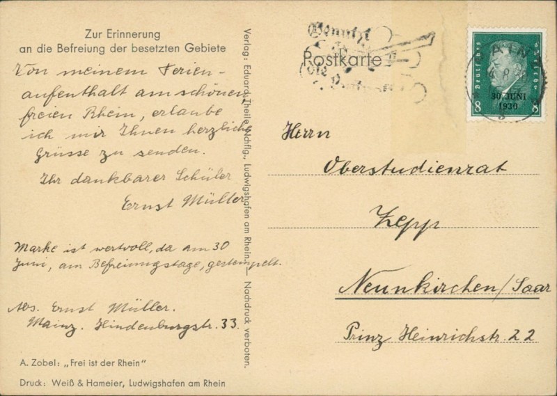 Alte Ansichtskarte, gelaufen am 14.08.1930.