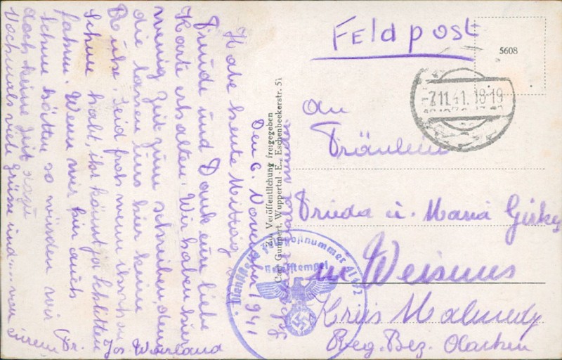 Alte Ansichtskarte, gelaufen am 07.11.1941.
