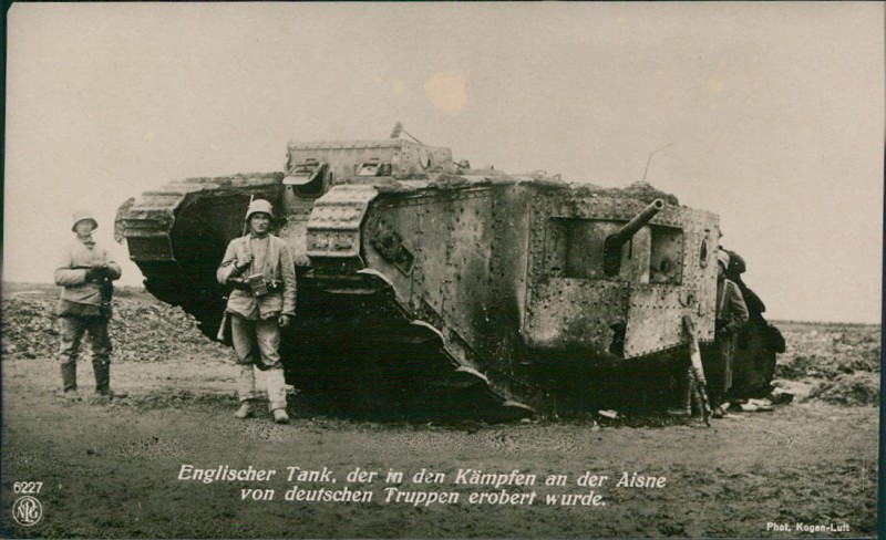 Englischer Tank, der in den Kämpfen an der Aisne von deutschen Truppen erobert wurde