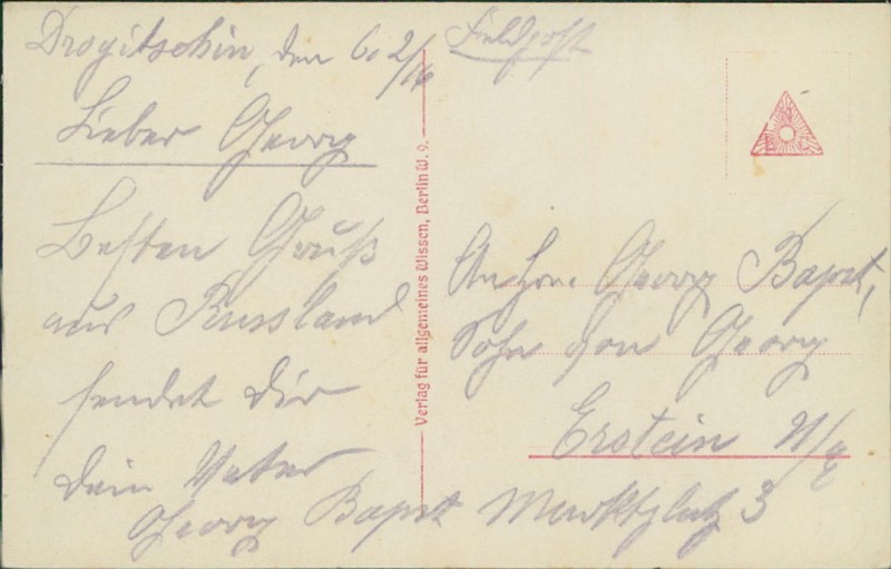 Alte Ansichtskarte, beschrieben um 1916.