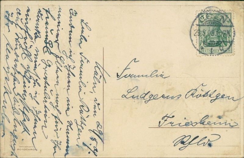 Alte Ansichtskarte, gelaufen am 29.05.1908 von Cöln nach Friesheim.