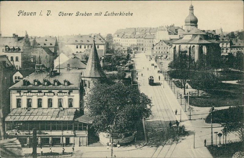 Oberer Graben mit Lutherkirche, links Restaurant zum Tunnel