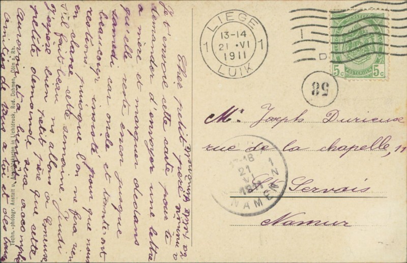 Alte Ansichtskarte aus Wiesbaden, gelaufen am 21.06.1911 von Liege nach St. Servais.