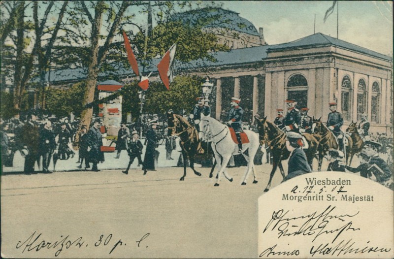 Alte Ansichtskarte aus Wiesbaden, gelaufen am 17.05.1907 von Wiesbaden nach Frankfurt a/M.