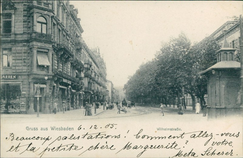 Alte Ansichtskarte aus Wiesbaden, gelaufen am 06.12.1906 von Wiesbaden nach Herent.