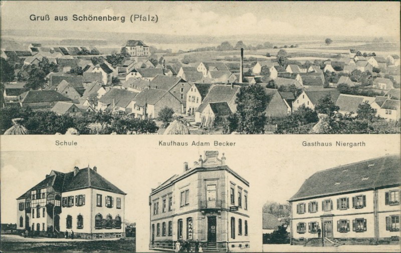 Gesamtansicht, Schule, Kaufhaus Adam Becker, Gasthaus Niergarth
