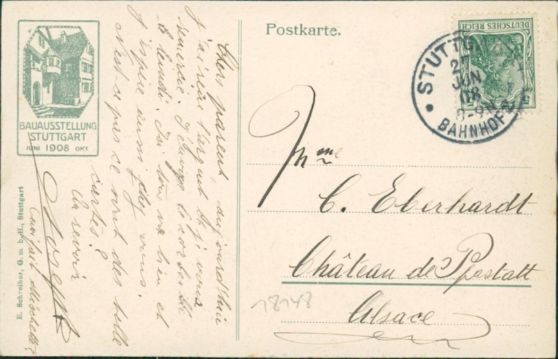 Alte Ansichtskarte aus Stuttgart, gelaufen am 27.06.1908.
