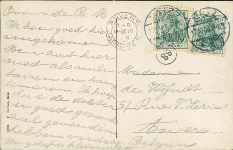 Alte Ansichtskarte aus Metz, gelaufen am 17.10.1908 von Metz nach Anvers.