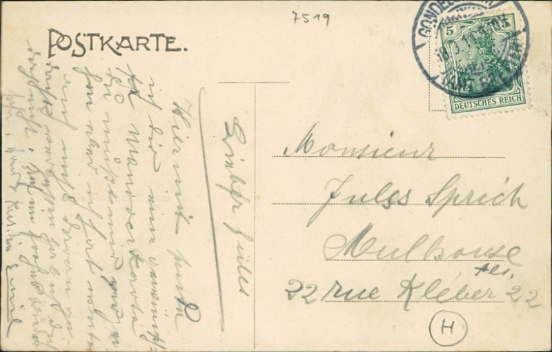 Alte Ansichtskarte aus Gondelsheim, gelaufen am 18.09.1911 von Gondelsheim (Amt Bretten) nach Mulhouse Als.